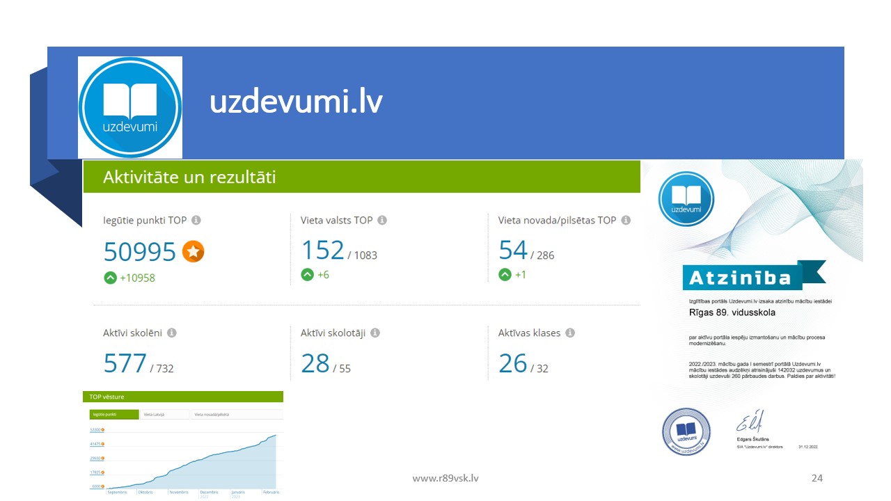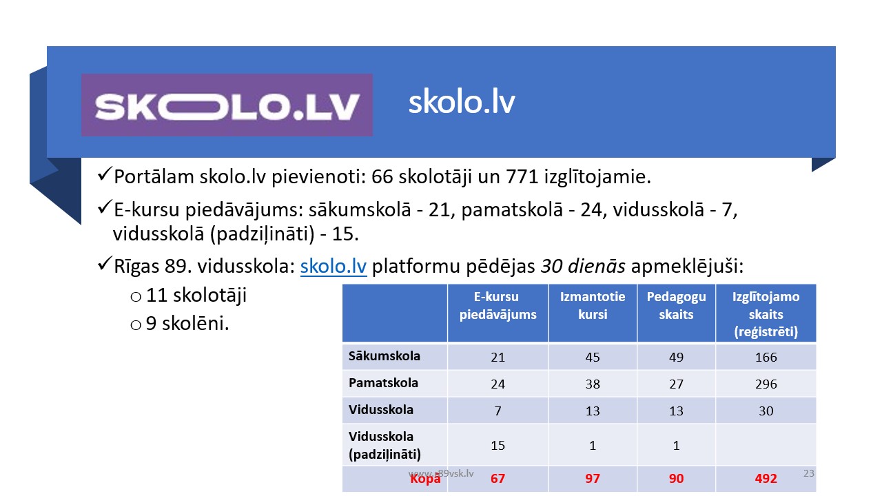- Mācību procesā tiek izmantotas portāli uzdevumi.lv, skolas soma, mācīšanās platformu skolo.lv, skola2030.lv