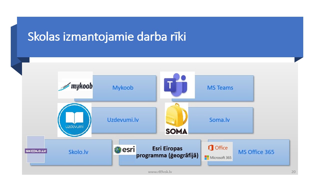 - Mācību procesā tiek izmantotas portāli uzdevumi.lv, skolas soma, mācīšanās platformu skolo.lv, skola2030.lv