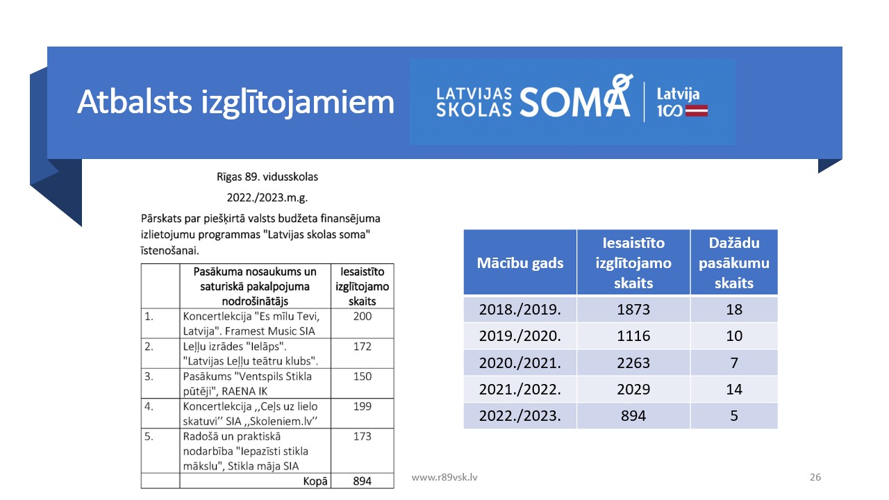 - RIIMC- skolotāju tālākizglītības kursu nodrošināšana;